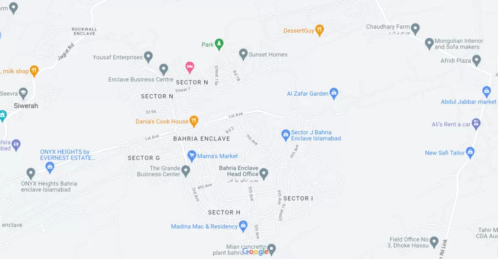Bahria Enclave is conveniently located near Jinnah Avenue in Zone IV of Islamabad Capital Territory, near Chak Shahzad, Park Road, and Kuri Road. Its prime location offers multiple access points and easy connectivity to various parts of Islamabad. Notable neighboring landmarks include